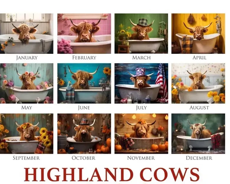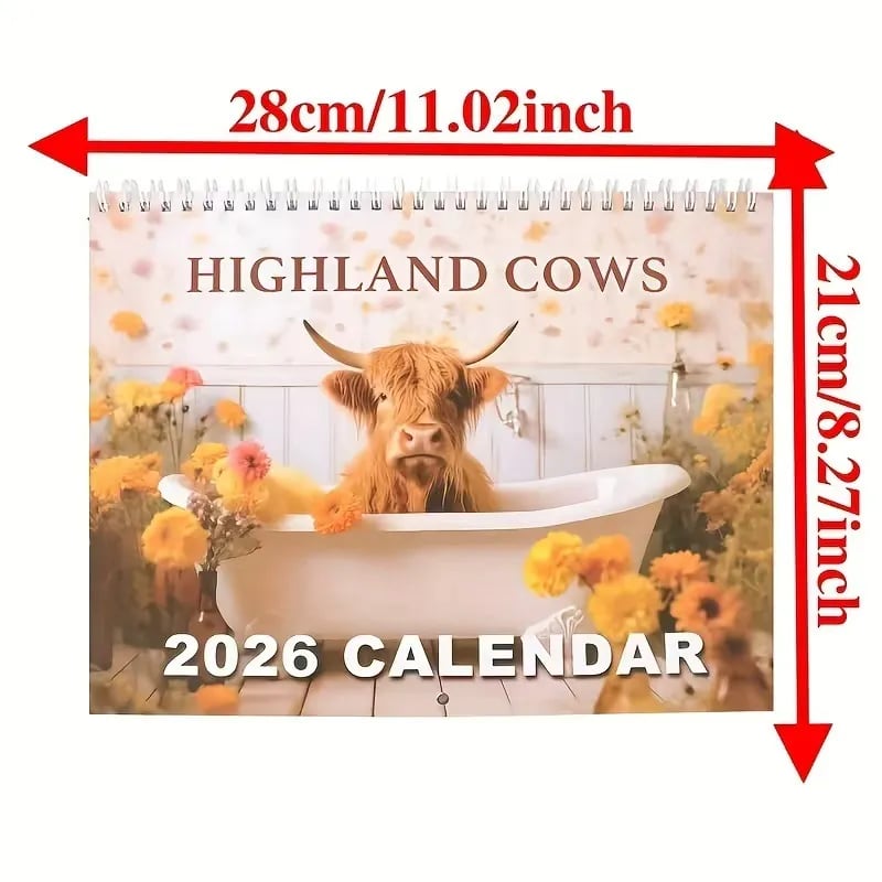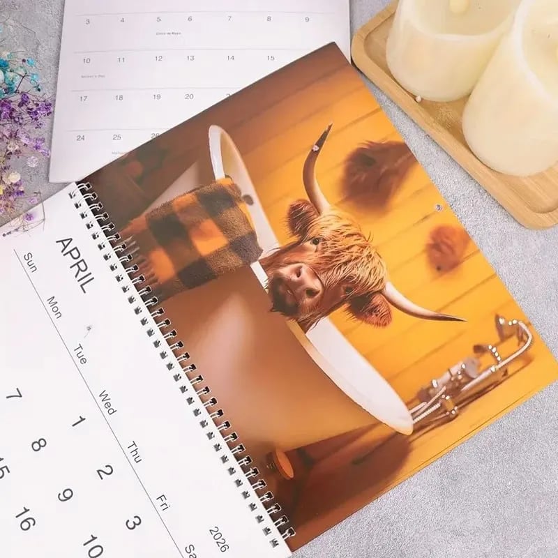 - 1 x 2026 Bathtub Highland Cow Calendar