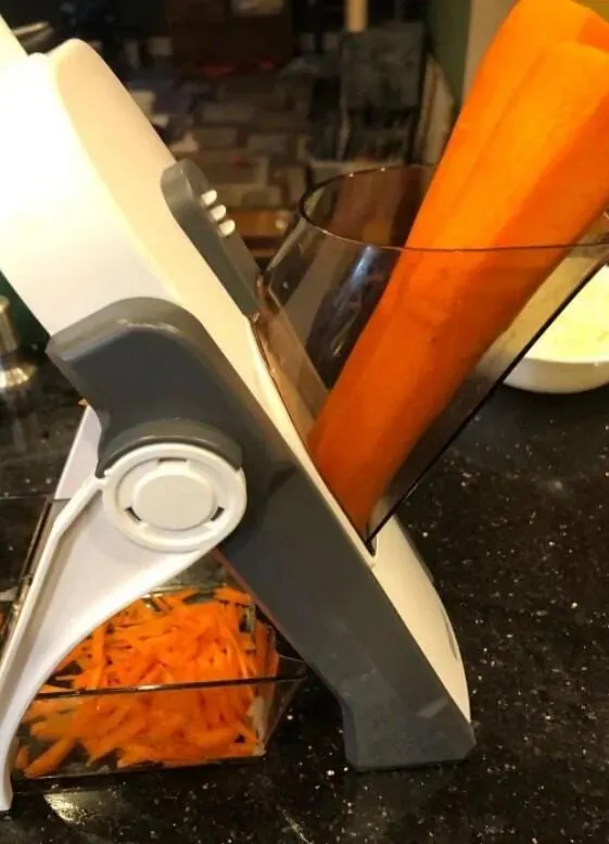 Highly recommend this if you cook a lot. I stopped using my mandolin a while ago because I kept cutting the tip of my finger on it, but this does essentially the same thing but is way easier and safer. I used this as I prepped ingredients for a stew I made tonight and was really surprised at just how much time I saved. Makes the idea of cooking a lot more approachable knowing I have this.